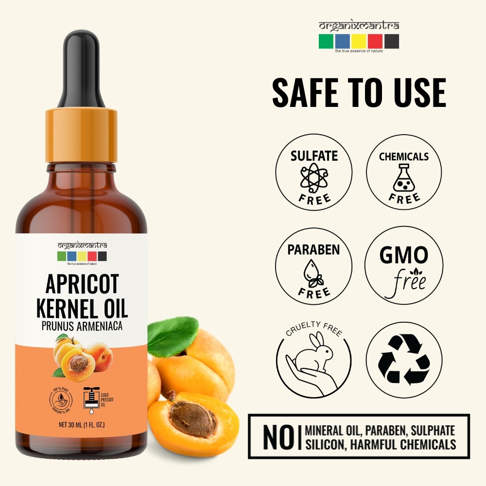 Organix Mantra Apricot Kernel Oil, 100% Pure, Natural & Cold Pressed Organic Oil, 30ML