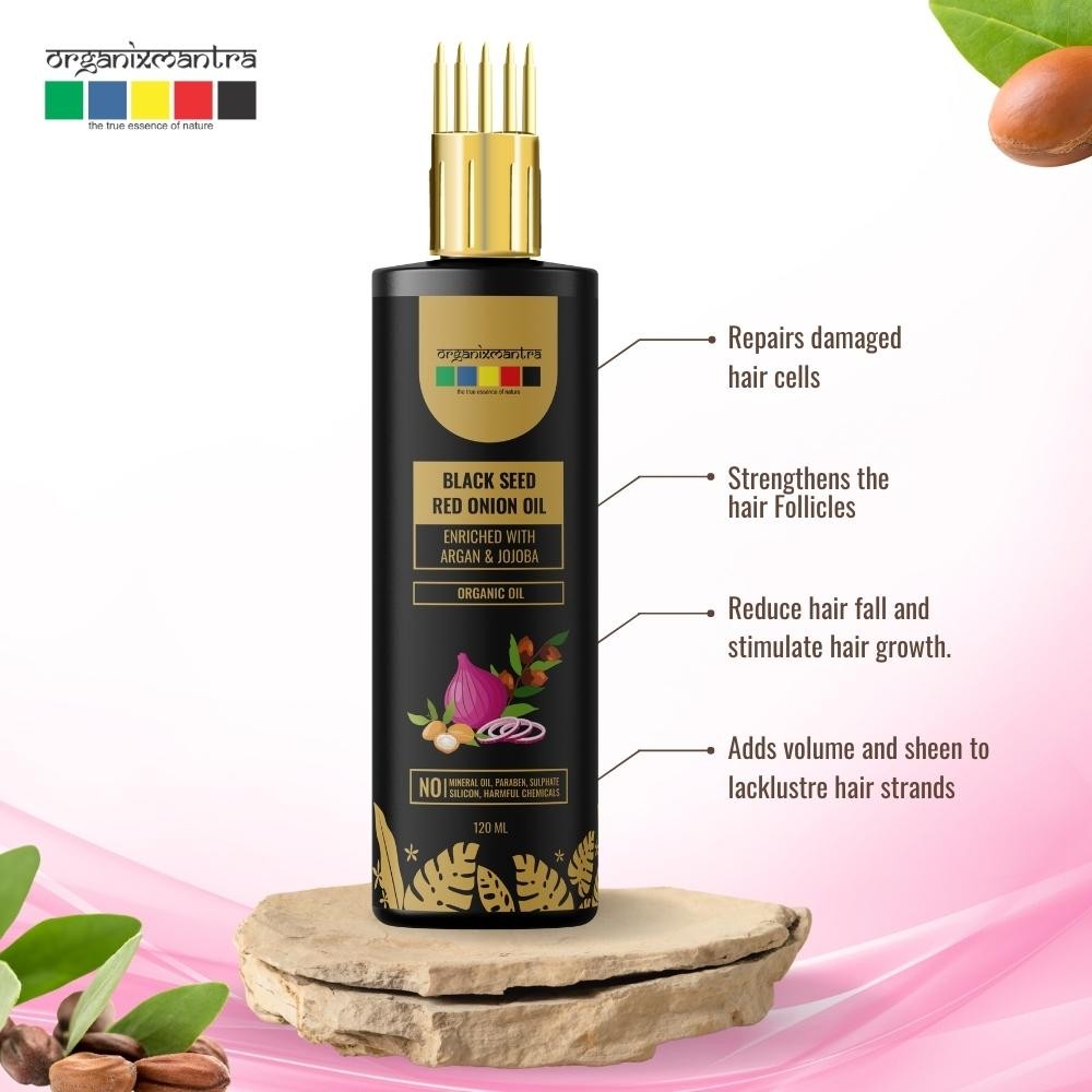 Experience the transformative power of Organix Mantra Black Seed Red Onion Oil, a blend of natural ingredients designed to nourish, strengthen, and protect your hair. Black seed Red Onion Hair Oil may help promote hair growth, fortify hair strands, reduce hair fall, and improve overall hair health, leaving your locks feeling soft, strong, and lustrous.