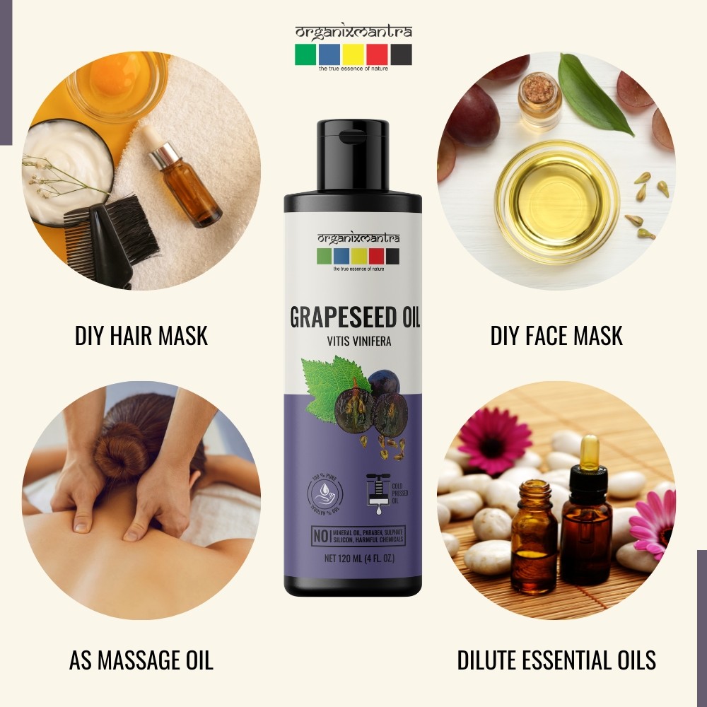 • Carrier Oil: Use Grapeseed Oil as a Carrier oil for your favorite essential oils in DIY beauty recipes.