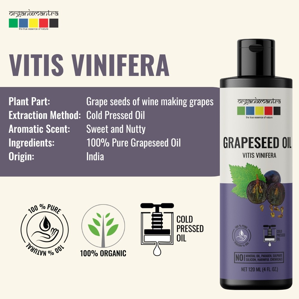 Embrace the revitalizing qualities of Organix Mantra Grapeseed Oil, cold-pressed and sourced from India. Rich in antioxidants, and non-comedogenic in nature, Grapeseed Oil is an excellent moisturizer for all skin types. With its faint and subtle fragrance, this oil blends seamlessly with various Essential Oil combinations.