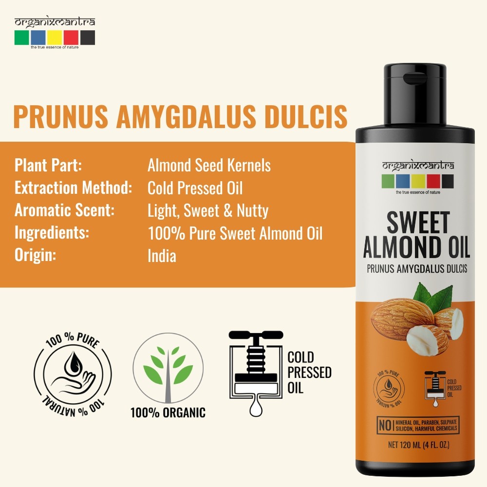 Organix Mantra Sweet Almond Oil, Cold Pressed Organic Oil, 120ML x 2
