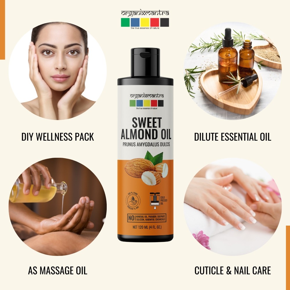 Organix Mantra Sweet Almond Oil, 100% Pure, Natural & Cold Pressed Organic Oil, 120ML