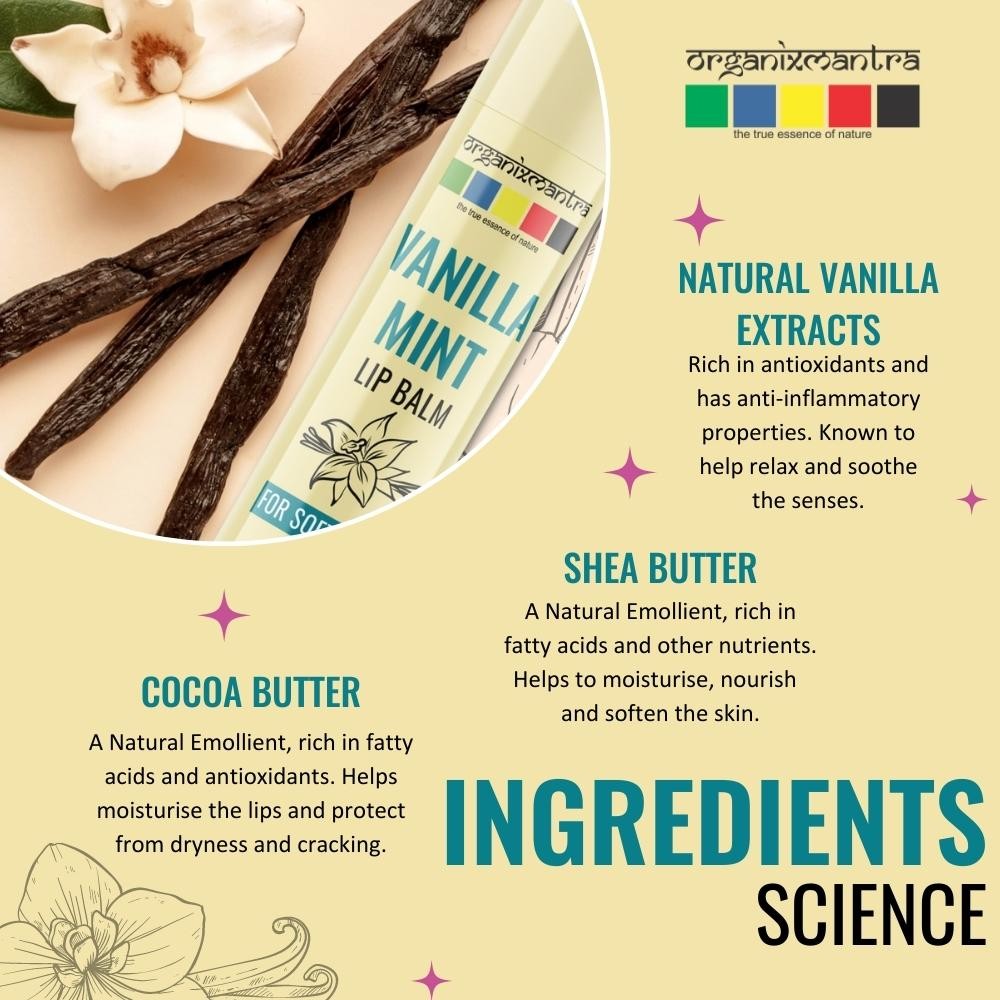 NATURAL ANTIOXIDANT FOR LIPS: The Vanilla Mint Organic Lip Balm with Vitamin E acts as an antioxidant that is known to help protect the lips from oxidative stress and environmental damage.