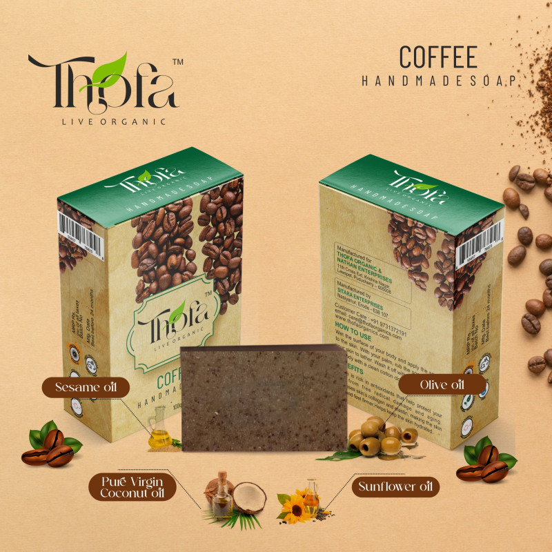 Thofa Handmade Coffee Soap Bar for Men & Women Handmade, Organic Soap Paraben &, Sulfate Free Fights Tan, Glowing Skin 100G