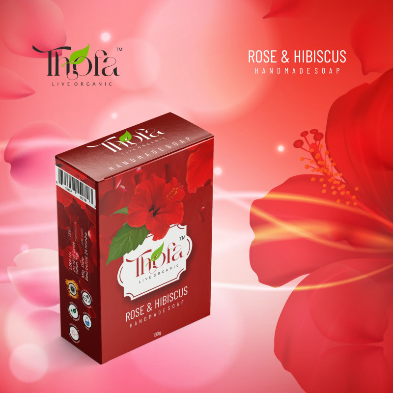 Thofa Live Organic Handmade soap with Rose and Hibiscus Exfoliating Natural Soap for Men and Women For Natural Glowing Skin – 100gm