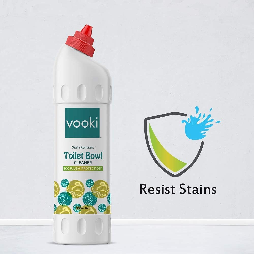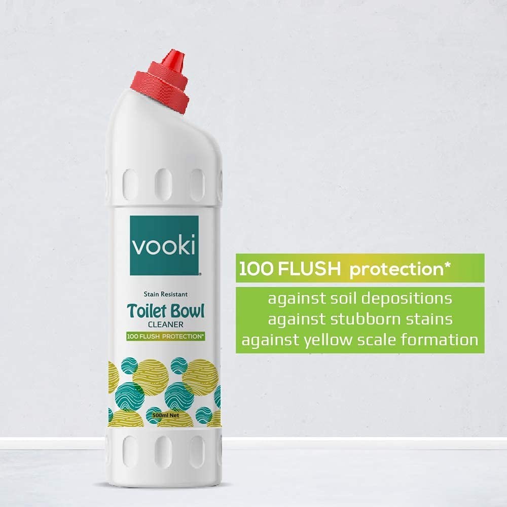 2. VOOKI Stain-resistant toilet bowl cleaner is formulated with completely biodegradable green acid, with a special protecting agent - which keeps your toilet bowl clean & shine for up to 100 flushes.