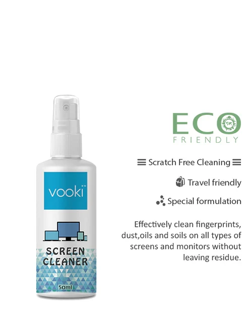 1. Vooki screen cleaner spray for laptops, computer, mobile, TV, LCD, LED screens.