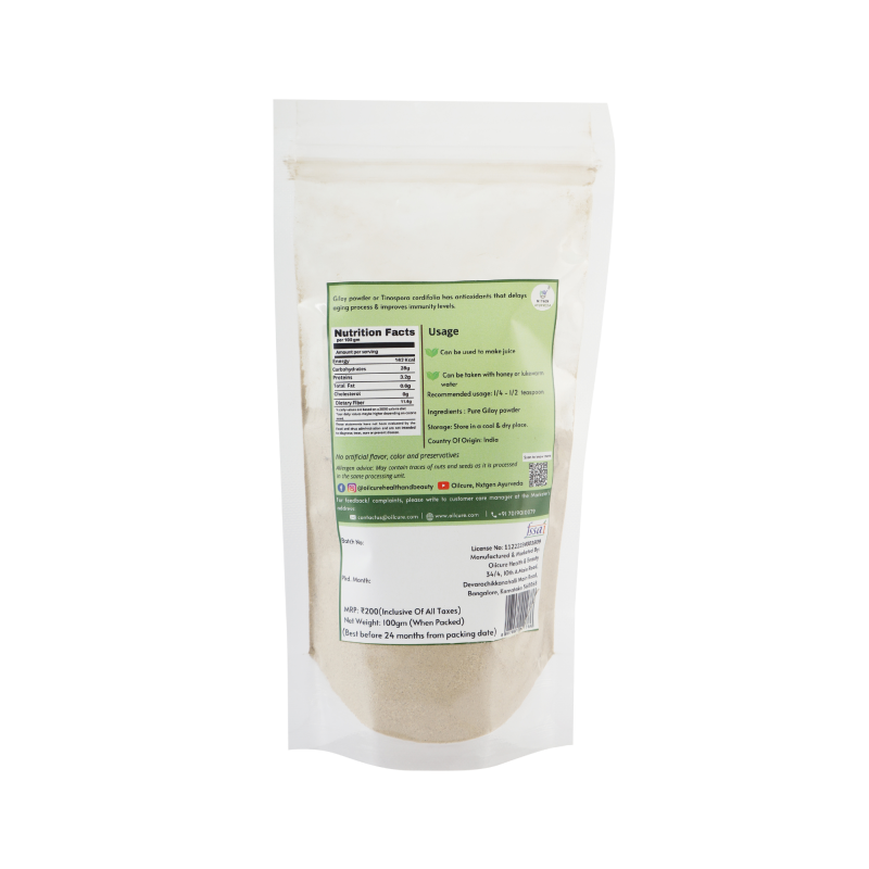 Tinospora cordifolia/ Giloy/ Guduchi/ Kwath has a lot of antioxidants present, which helps in higher immunity levels and delayed aging process. There are various other benefits as well which include stress buster, help in fevers, allergies, lower blood sugar.