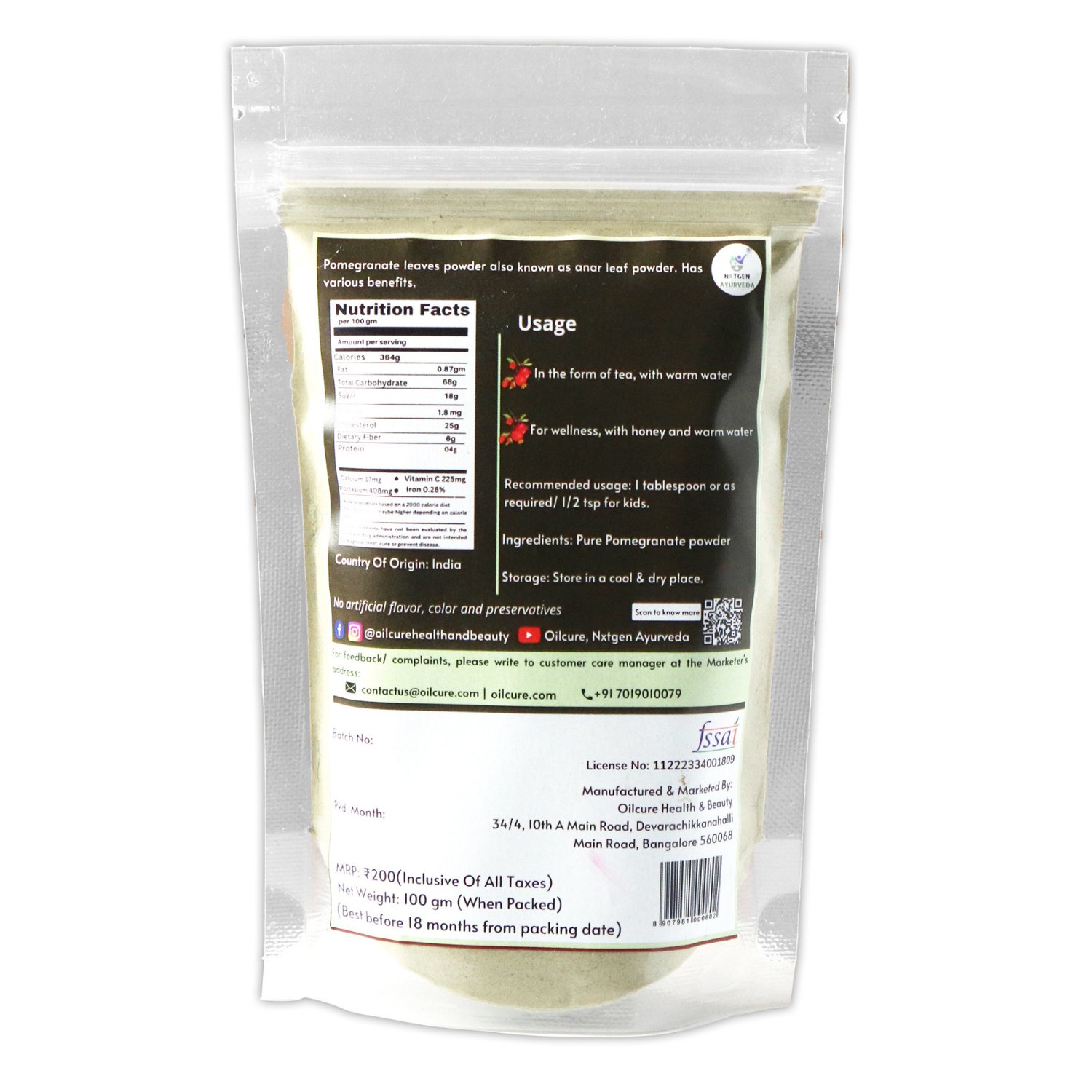 Nxtgen Pomegranate leaf powder are not less beneficial than pomegranate/anar fruit. It is loaded with various benefits. Pomegranate Leaf Powder's nutrients contribute to bolstering the immune system, enhancing overall health.