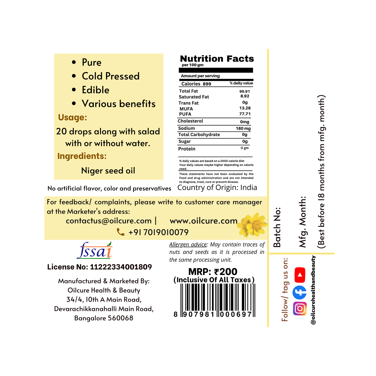 Niger Seed Oil helps to prevent gastrointestinal problems, good in autism and ADHD, fighting inflammation, supporting cardiovascular health.