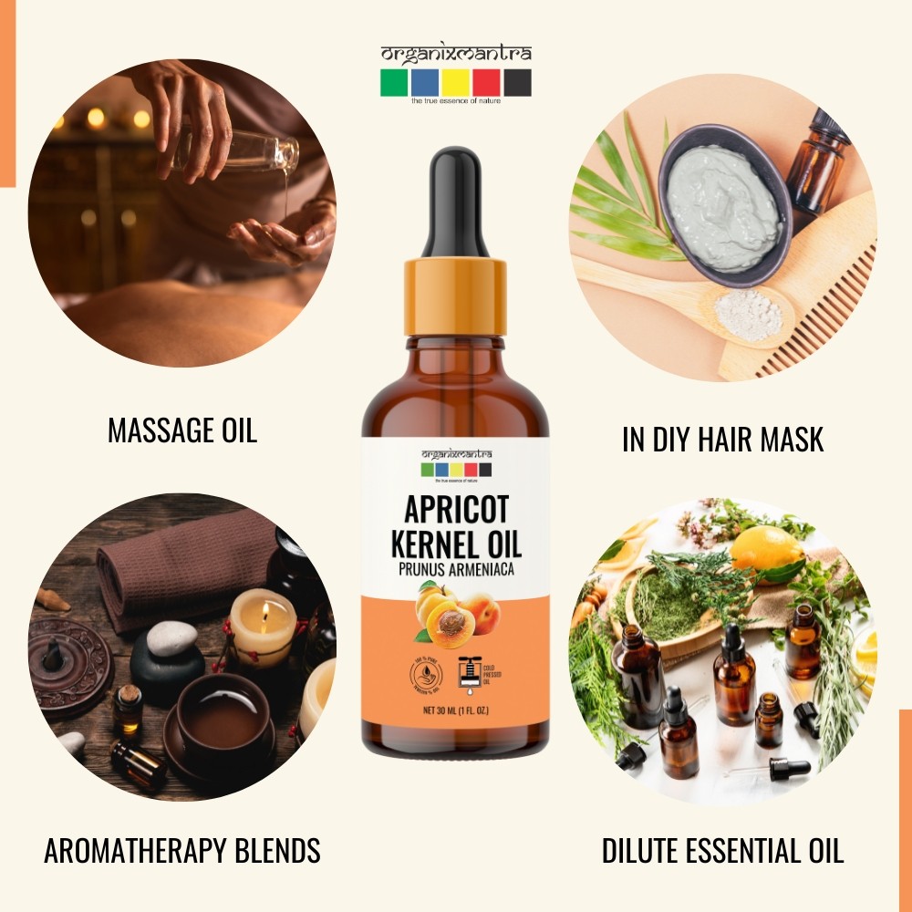 Organix Mantra Apricot Kernel Oil, 100% Pure, Natural & Cold Pressed Organic Oil, 30ML