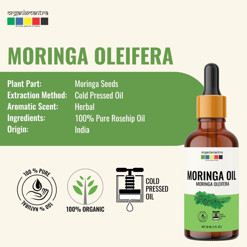 - MANAGES ACNE & ACNE SCARRING – Antimicrobial properties of Moringa Oil is known to help manage acne, blackheads and pimples. Known for its antiseptic properties, the Oil has the ability to minimize acne breakouts.