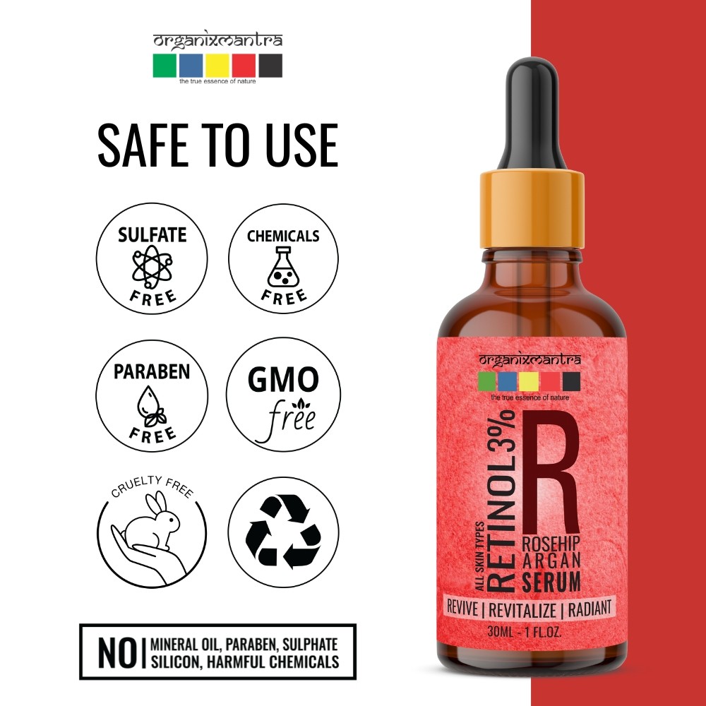 Retinol is a vitamin A derivative that is highly effective in reversing sun damage and signs of aging. Regularly applying Retinol serum is known to aid in cell turnover reduce fine lines, even skin color, improve texture, tighten pores, and stimulate collagen production. Organix Mantra Retinol 3% Serum for the face is a balanced blend of Vitamin E, Hyaluronic Acid, Moroccan Argan Oil, and Rosehip Oil.
