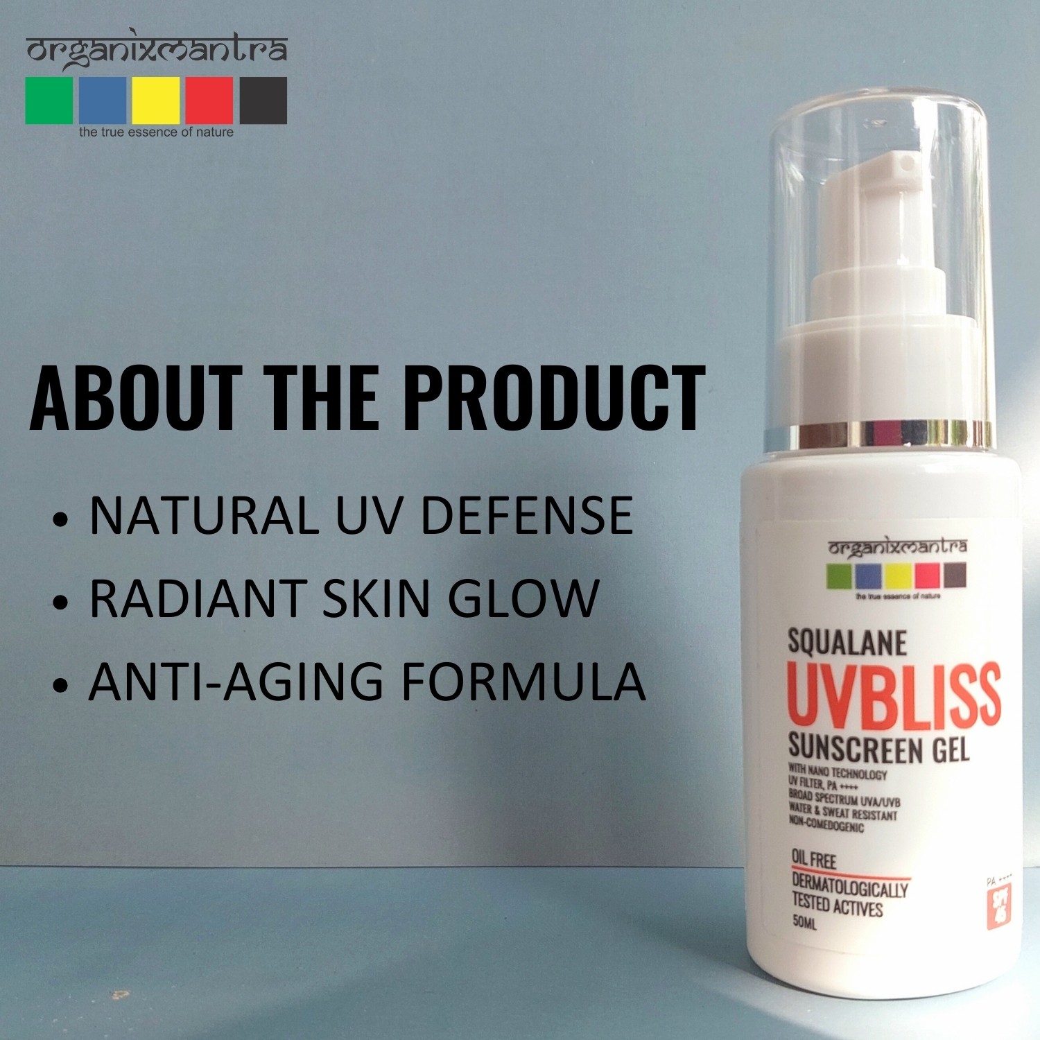 Squalane UV Bliss Sunscreen Gel offers a master blend of nature’s finest for skin protection and nourishment. Squalane, our star ingredient, is known to naturally shield against UV rays while hydrating the skin. Rose Water and Aloe Vera Gel have properties to soothe and refresh, ensuring your skin feels revitalized. Bamboo and Purslane Extracts are known to refine skin texture, while Shiitake Mushroom gives an anti-aging lift.