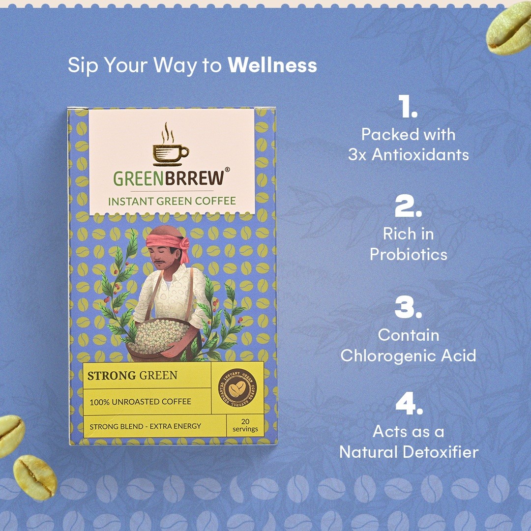 Strong Green Coffee | 100% Unroasted Coffee | Strong Blend - Extra Energy (20 Sachets, 60g)