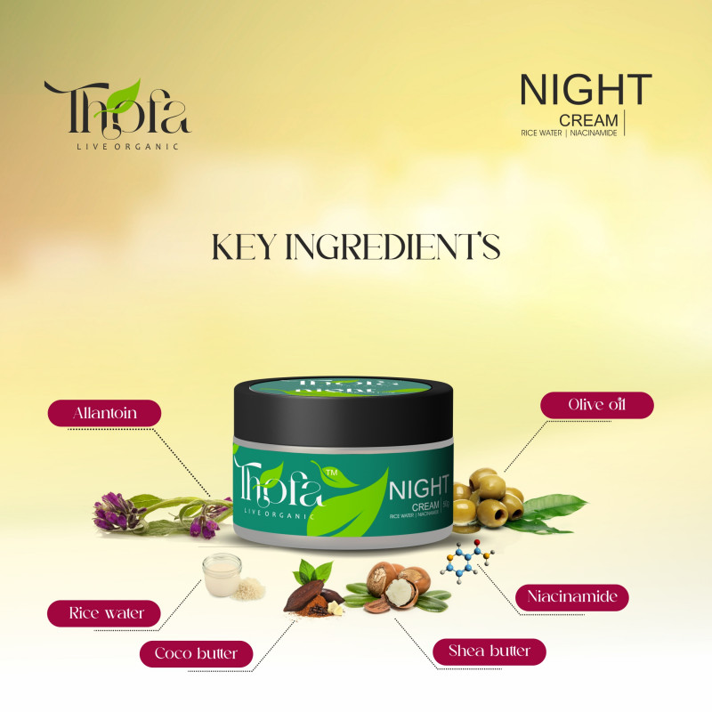 - Natural Ingredients: Thofa Night Cream contains all-natural ingredients like Rice water, Cocoa Butter, Shea Butter, and Olive Oil, and is free of parabens and sulfates.