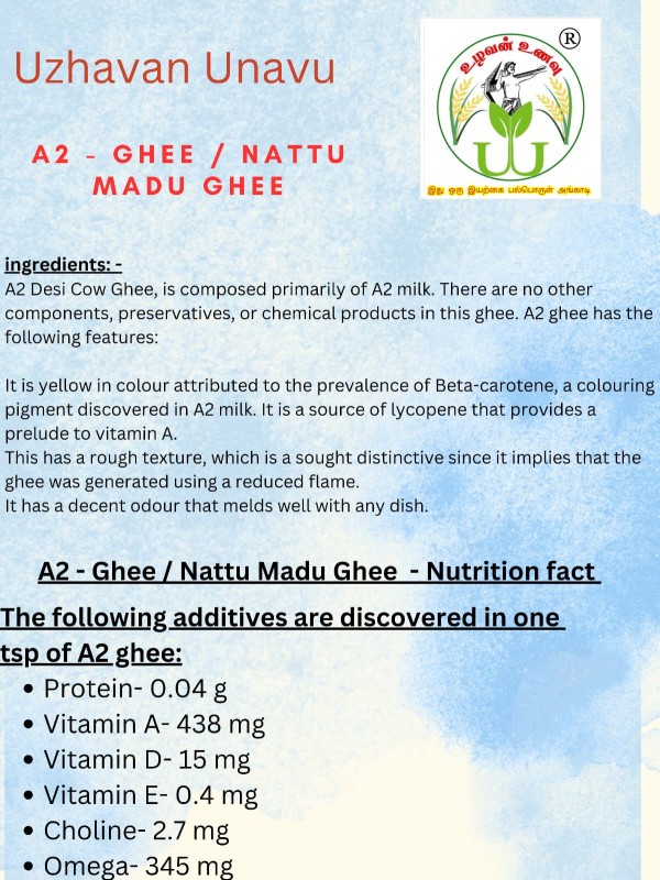 Uzhavan Unavu - Chemical Free - A2-Kangayam ghee / Nattu madu ghee